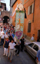 Le vie della contrada si riempiono di gioia e di bandiere. La festa della vittoria è il momento in cui lasciare libero sfogo alla felicità; così, se nel 2000 si preferisce ricordare le vittorie "storiche" dell'Istrice, con oltre 700 costumi d'epoca, quest'anno la scelta cade sul mondo delle fiabe, della mitologia, della fantascienza: un'esplosione di colori che invade tutto il rione della contrada. |