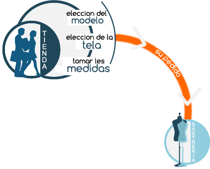 Hacer que el cliente elija el estilo y la tela que más le satisface, tome sus medidas y orden con el sistema "Tailor's Cut" el vestido por encargo.