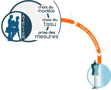Le client choisit le style et le tissu qu'il préfère. Vous prenez ses mesures et faites l'ordre de le vètèment sur mesure, avec le système Tailor's cut.